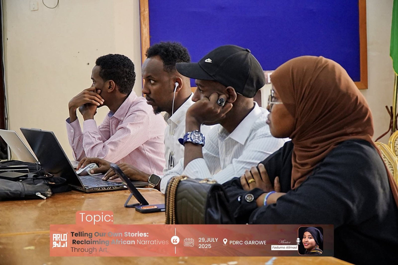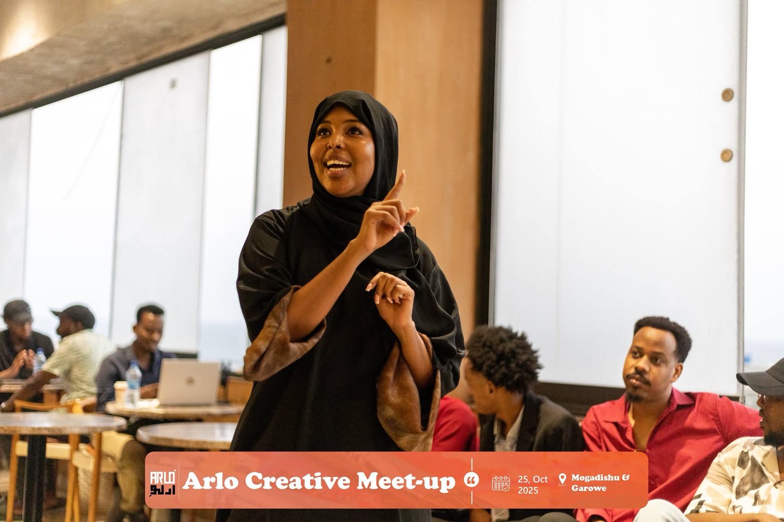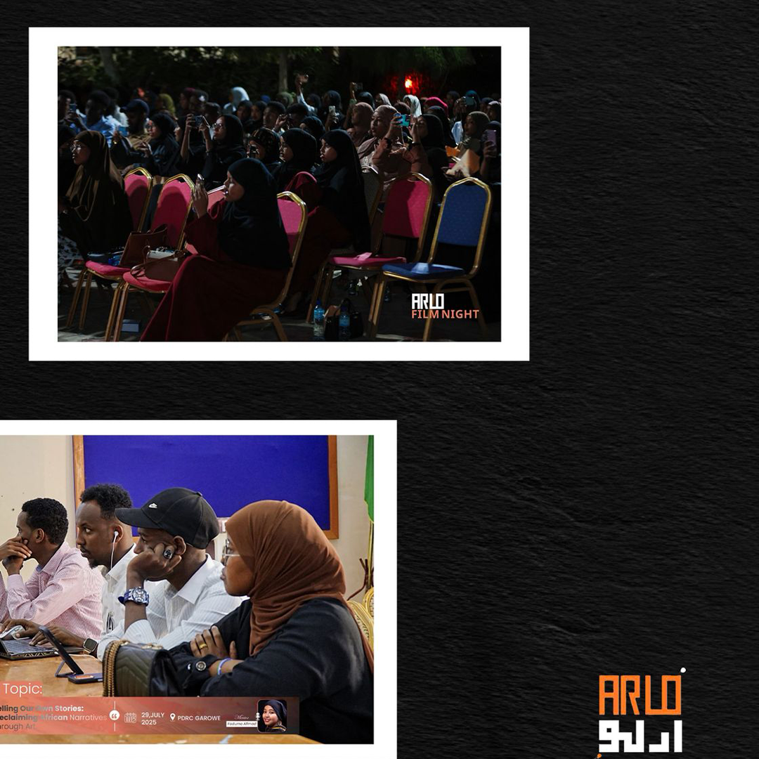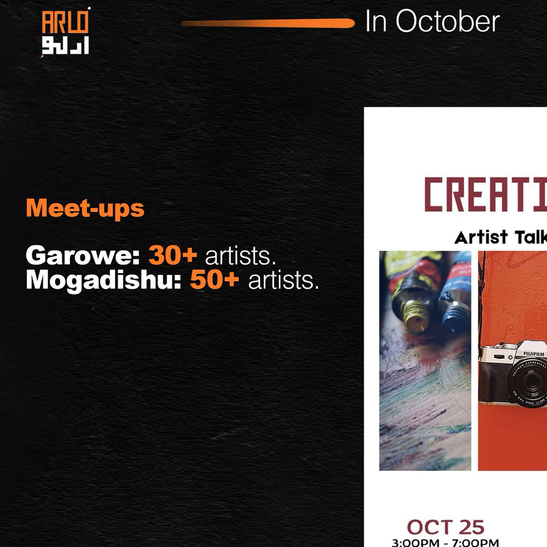 Arlo Art Space hosts the Arlo Film Nights, Arlo Trainings, and regular artist exhibitions. It is home to the Arlo Gallery and a growing community of Somali creatives shaping the future of art and culture. We offer continuous artistic and public programs, including film screenings, creative workshops, artist talks, and exhibitions that bring together filmmakers, writers, photographers, and musicians. Arlo Art Space supports collaboration and knowledge exchange through its creative meetups and mentorship initiatives, helping artists gain visibility and professional growth opportunities. Arlo also works with partners across Somalia and East Africa to build sustainable networks for art, film, and cultural exchange.